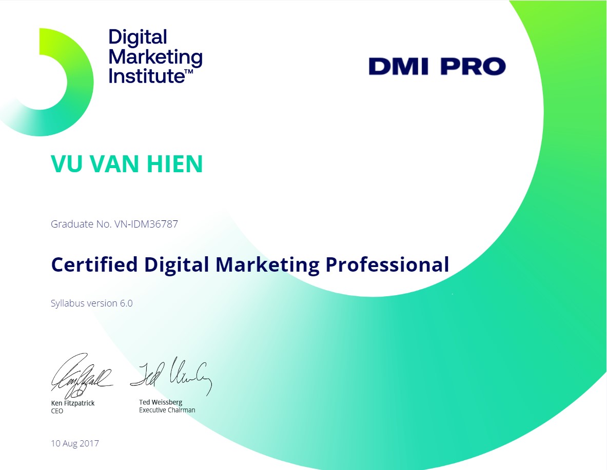 Becoming a Digital Marketer at Brand-Side MASTERING DIGITAL MARKETING Khóa học hỗ trợ Marketer hệ thống hóa kiến thức để định chiến lược, lên kế hoạch và quản lý các hoạt động digital marketing trong doanh nghiệp Xem chương trình học Certified Digital Marketing Professional Plus Google Ads Measurement Certification Google Ads Display Certification Google Ads Search Certification Google Ads Search Certification Google Ads Video Certification Đối tác và học viên hình ảnh khóa học Hình ảnh một số buổi học trong chương trình MDM